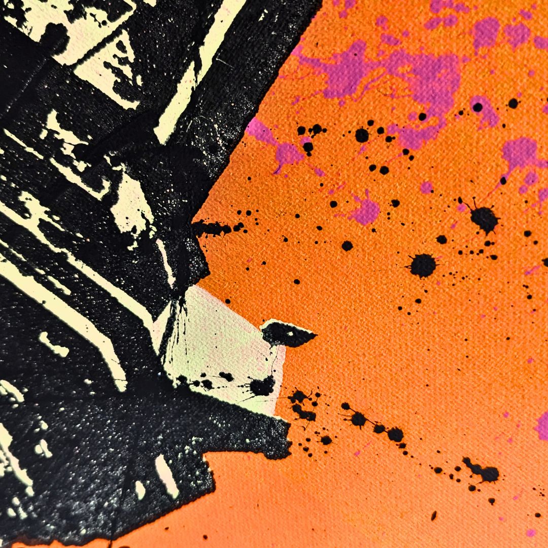 Medium: Mixed media print on canvas, including aspects of spray paint screen printing.