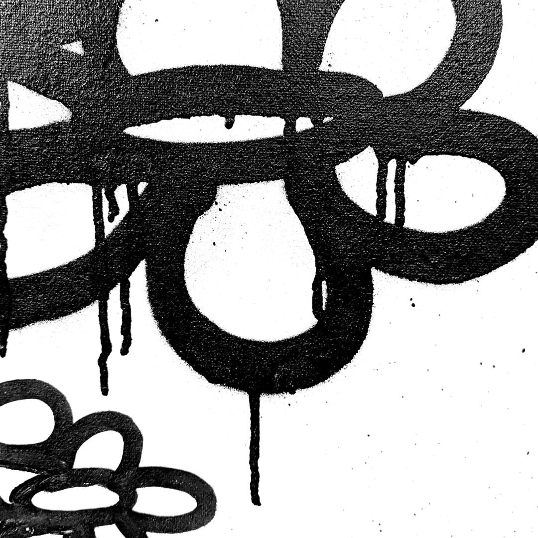 Medium: Mixed media print on canvas, including aspects of spray paint screen printing.